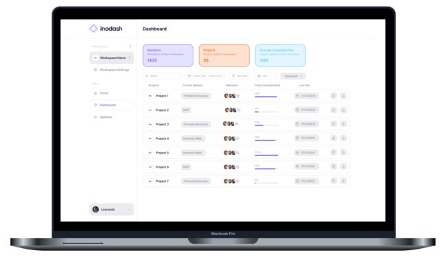 Web-based innovation dashboard helping entrepreneurs validate, plan, and launch smarter, faster, and stronger.