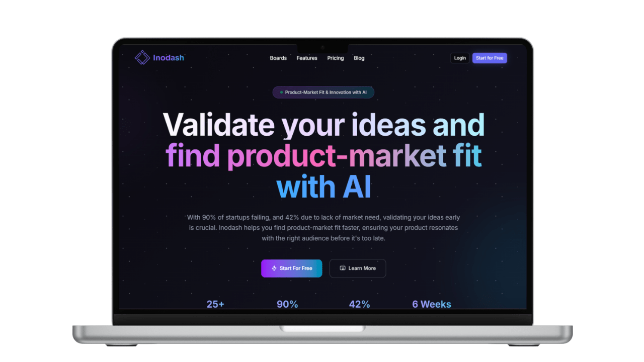 Web-based innovation dashboard helping entrepreneurs validate, plan, and launch smarter, faster, and stronger.
